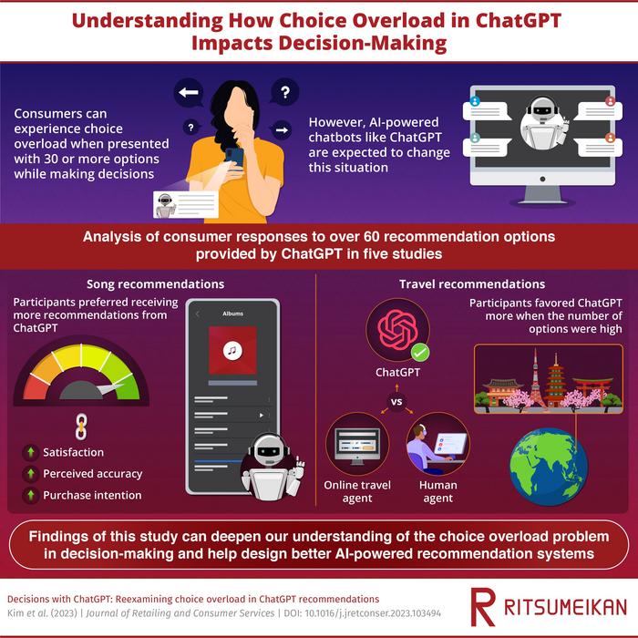 Against this backdrop, a research team led by Professor Changju Kim from College of Business Administration, Ritsumeikan University, Japan, recently conducted a detailed study to investigate how the problem of choice overload impacts ChatGPT users and its impact on their decision-making process. This study was made available online on July 13, 2023, and will be published in Volume 75 of the Journal of Retailing and Consumer Services in November 2023.