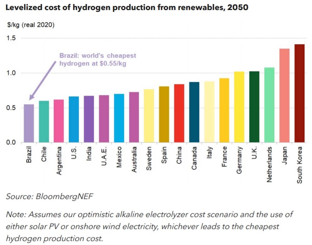 Currently, when compared to the production of gray hydrogen from natural gas or coal, green hydrogen costs more than twice as much. The production of green hydrogen in Brazil, from solar and wind energy, has been evaluated as a cheaper way of producing it. The expectation is that by 2050 Brazil will produce the cheapest green hydrogen in the world, costing half the price at which gray hydrogen is produced today. But a lot of research and development still needs to happen to get there.